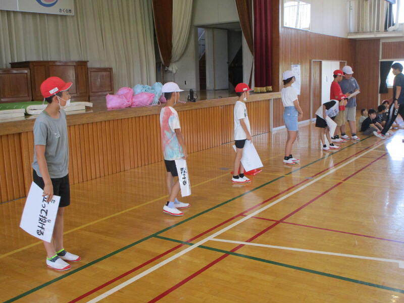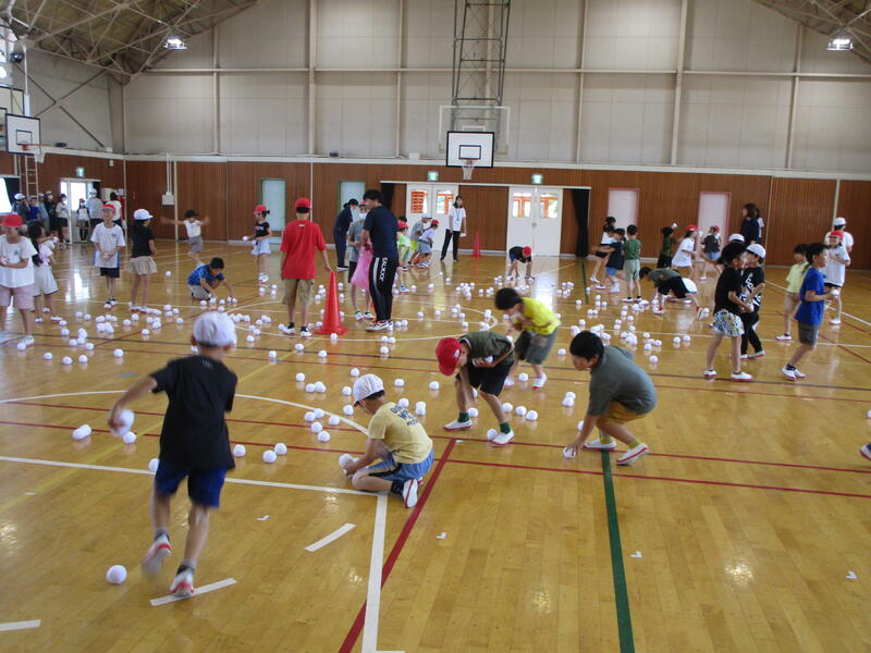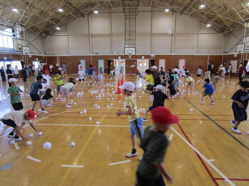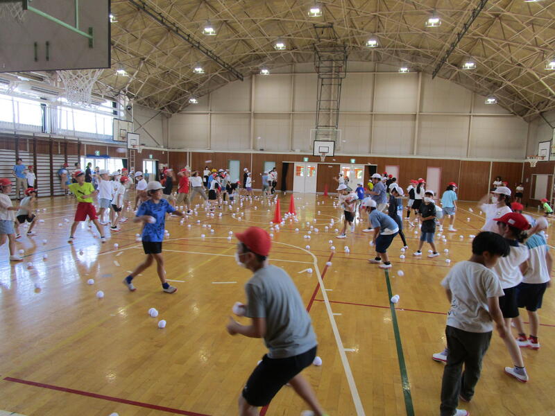 今回のチャレンジタイムは、本校の運動能力の課題である「投げる」力を高めるための企画「雪玉投げ」を行いました。熱中症運動指針は「運動中止」の手前でしたが、冷房が効いた体育館のおかげで、快適な運動ができました。
