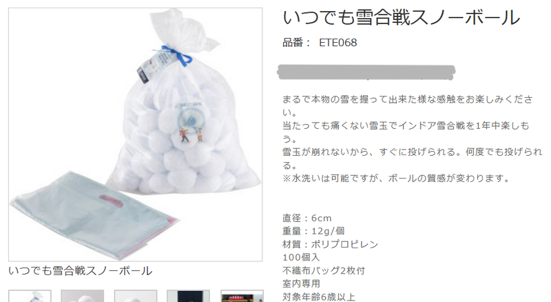 雪玉といっても、本物があるはずはありません。購入した⤵を使用します。
