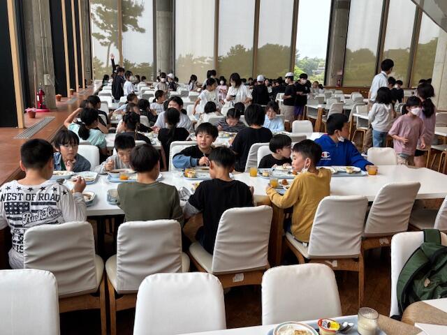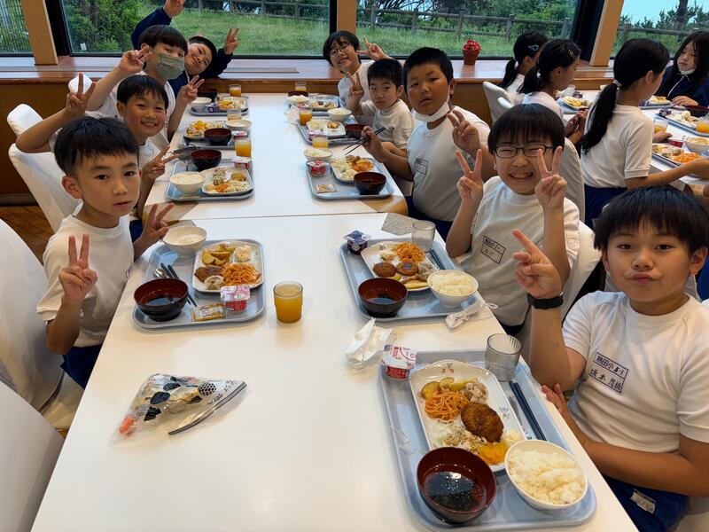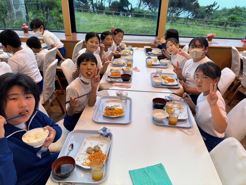 すべての活動を終えて、昼食の時間です。海浜自然の家で食べる4回目の食事です。ここでの、そしてこの宿泊学習での最後の食事になります。