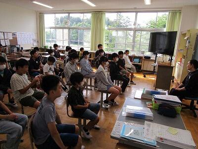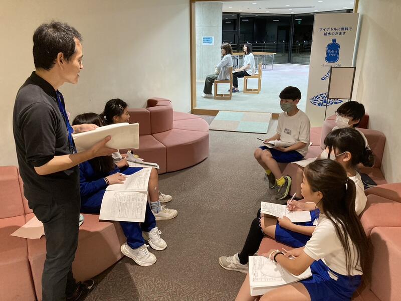 2日目午前中の活動です。降雨のため、予定していた「砂浜活動」に代わって、「ポセイドンからのメッセージ」を行いました。