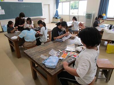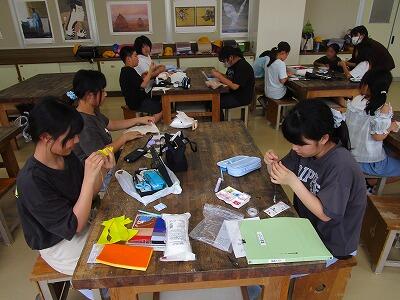 夕食後も夜の活動が目白押しです。部屋で休んだ後は制作実験室に移動し創作活動を行いました。