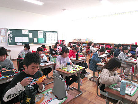 クラスの様子です。いつものように嬉しそうに食べていました。さくら市はお弁当の日が5回ありますが、この取り組みが食を考えるよい機会になればと感じています。