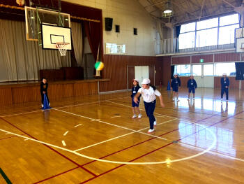 2年生体育は、体育館でドッジボールをしています。子ども達は、ボールを使う種目が大好きです。コートを大きく取っているため、一生懸命投げてもなかなか届きません。それでも、夢中になってプレイしていました。