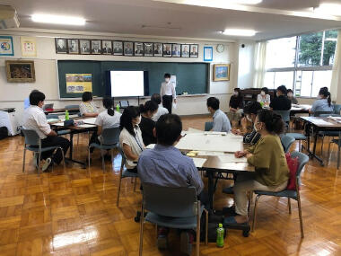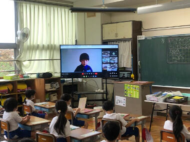 夏休みが終わり授業再開です。緊急事態宣言下でのスタートとなり、今まで以上に新しい生活習慣を意識・実践していくよう子ども達に伝えました。今後感染が拡大した場合、オンライン授業も想定されますが、さっそく1年生がその練習をしていました。画面全体にみんなの顔が映ると大きな歓声があがっていました。