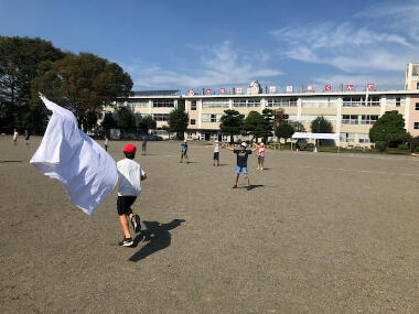 今日は久しぶりににいたキッズがありました。これは、異学年縦割り班による遊び活動です。ドッジボールをやっている班では、ボールを低学年の子に渡して投げさせてあげたり、学年の子に応じてボールのスピードを加減したりして、みんなが楽しく遊べるよう工夫していました。
