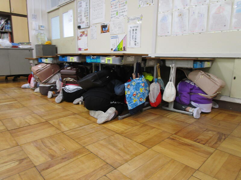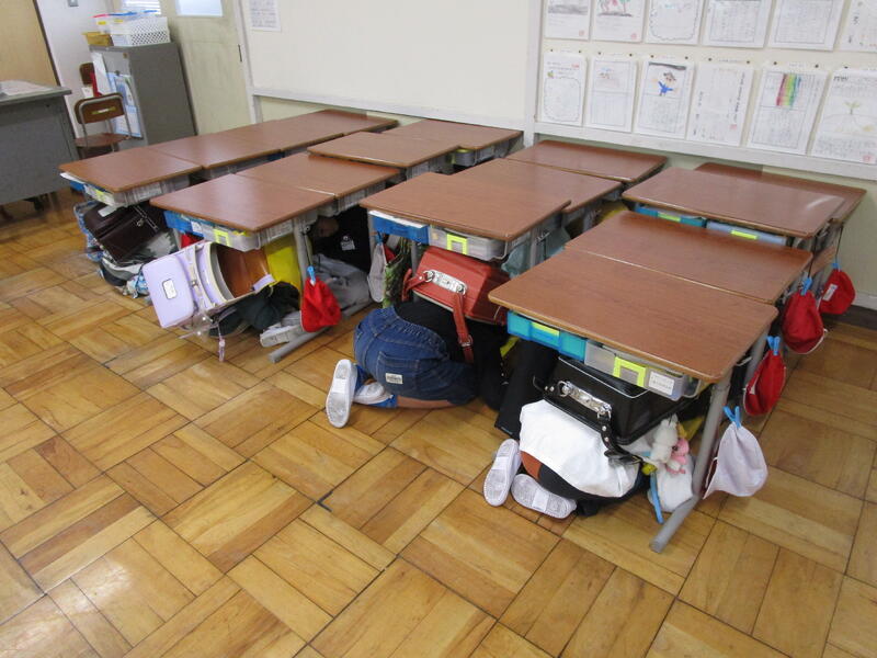 全員が机の下にもぐって