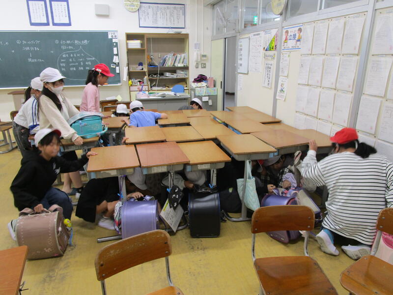 指導されたことをしっかりと守り、一人一人が「自分の命は自分で守る」ことを自覚している姿が見られました。”安全な学校”の意識付けを図るための大切な訓練を、しっかりとした気持ちで実践することができました。