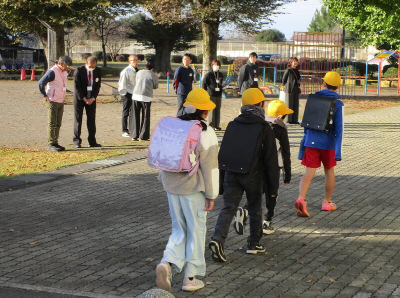 恒例のさくら市青少年センター「わわわ隊」のみなさん、民生委員さん、市教委の方々による「あいさつ巡回運動」です。本校昇降口の前であいさつで児童を迎えてくれました。