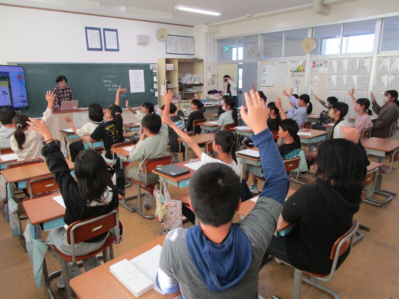 身近で直近で、そして地球環境の話題のため、児童も食い入るような視線で集中します。
