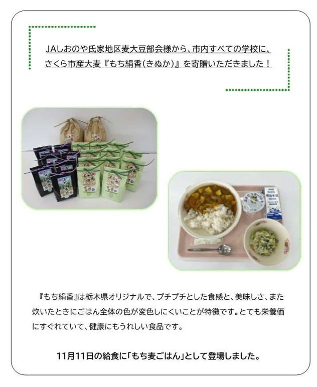 本日の給食「もち絹香」について ~さくら市教育委員会~