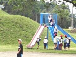 本日も暑い1日となりました。初夏の季節、緑の築山は、子供たちの絶好の遊び場所のようです。