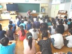 本日の朝の活動は、子どもたちが楽しみにしているアリスの会の方による読み聞かせの時間です。今回は、5・6年生は一緒にお一人の方に読み聞かせをしていただきました。