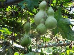 夏の日差しをたっぷり浴びて、すくすくと育っています。(ヒョウタン、ヘチマ、ナス、キウイ)