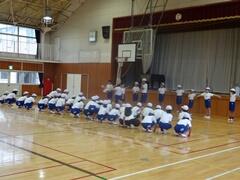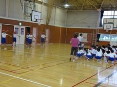 ラジオ体操の練習では、基準となる1年生の児童も元気な声が出ていました。