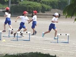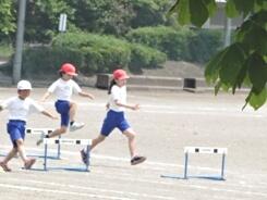暑さに負けずに、4年生が体育の授業でハードルの練習をしていました。既にフォームの決まっている児童も見られ、来年が楽しみです。