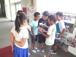 本日の朝から、児童会の運営委員が中心となって、「緑の羽根」と「熊本地震災害への支援」の募金活動がスタートしました。