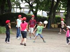 本日の昼休み後の活動は、ふれあい班ごとの自由遊びの時間です。ドッジボールやけいどろなど、思い思いの活動に取り組んでいました。