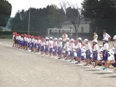 今週になりまして、運動会の練習がスタートしました。今日のいきいきタイムでは、隊形の確認を行いました。1年生の先頭の女子児童が基準となり、整列の仕方を練習しました。