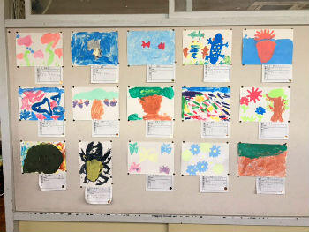 各教室の廊下掲示板にたくさんの作品が掲示されていますので、紹介します。