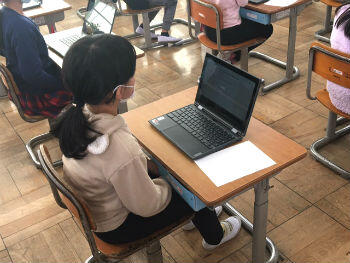ICT支援員お二人の支援をいただきながら、オンライン授業の実践を行ってます。子ども達も少しずつ慣れてきた様子。先生の指示に遅れることなく進められるようになってきました。