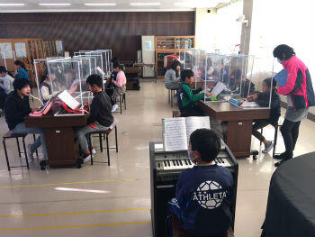 5年生は音楽、ルパン3世のテーマを演奏しています。