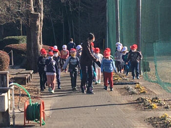 生活科の学習で、熟田小学校の冬探しをしています。敷地内を散策しながら、みんなで冬らしい”モノ”を見つけていました。