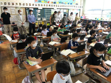 例年、1学期終業式には児童の意見発表を行っています。今まで頑張ってきたことや2学期にやりたいことなどを作文にまとめ、学年の代表児童が児童の前に出て発表してきました。しかし昨年度からコロナ禍のため式中での発表は取り止め、オンラインで行っています。今日は2・4・6年の代表児童が立派に発表することができました。