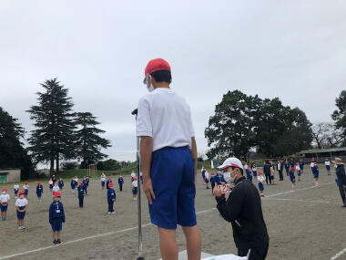 全体練習で初めてラジオ体操を合わせました。なんとなくぎこちなさがあるものの上手にできました。教室で練習していたようです。
