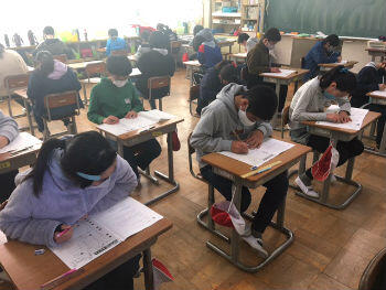 今日は、小学1年生から中学2年生までを対象とした、さくら市一斉の学力調査が行われました。小学生は国語と算数の2教科です。各教室では集中してテストに臨んでいました。