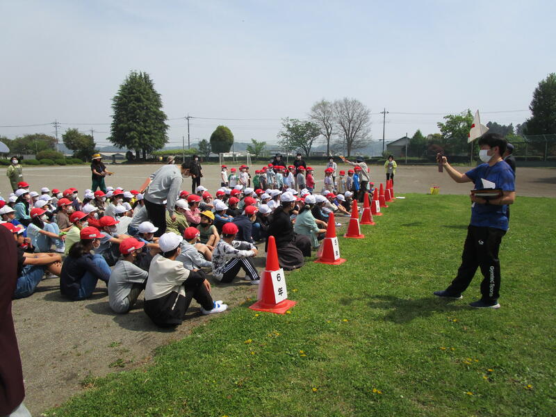 全校生で一斉に行いました。低学年は回る順番を守って計測、高学年は状況を見て空いているところで計測。