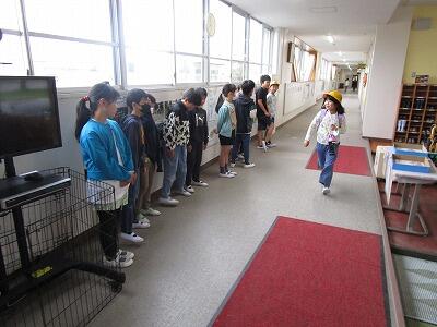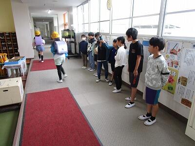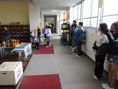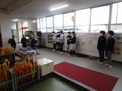 月曜は6年生、火曜5年、・・・と曜日の担当となった学年が、昇降口を入ったところで並んであいさつをしました。木、金曜は遠足の日を避けるため、担当学年を入れ替えました。