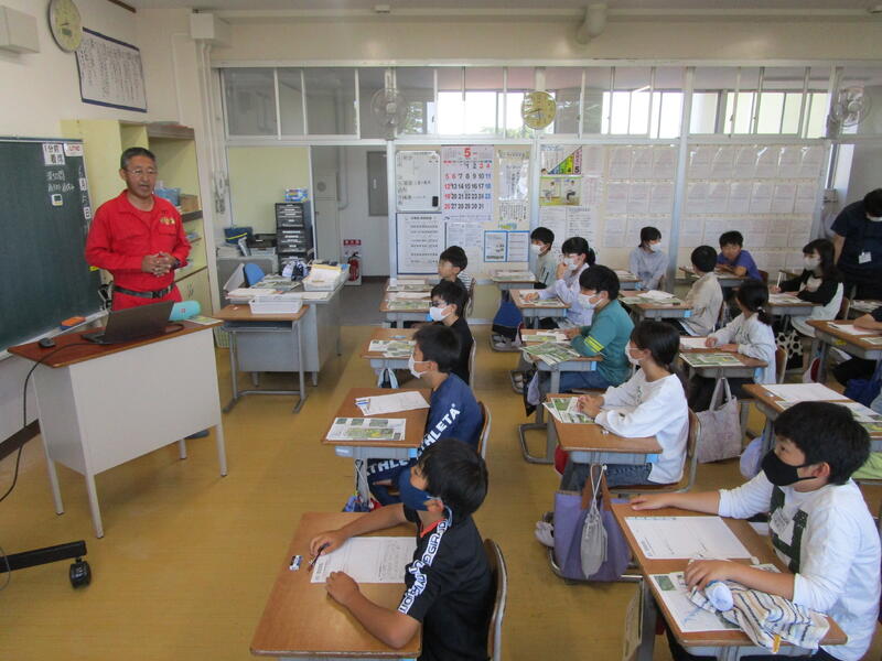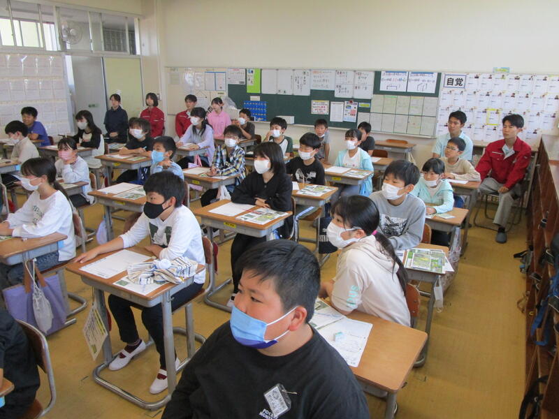 最初に「うじいえ自然に親しむ会」会長の高橋伸拓さんが、教室で環境保全活動についてのお話をしてくださいました。