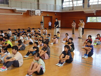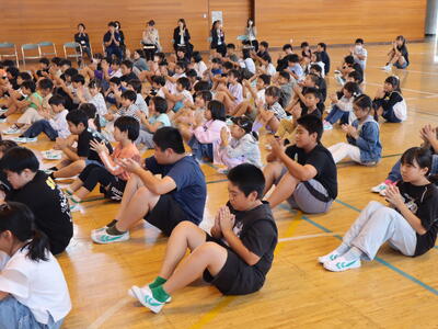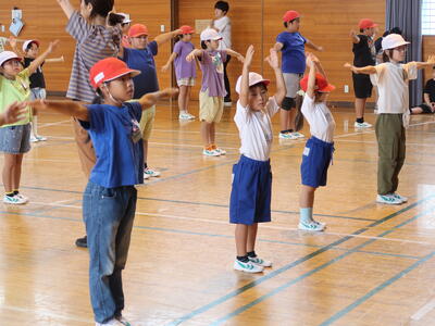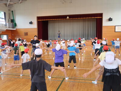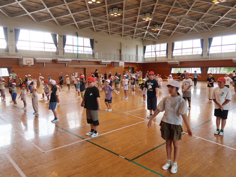 今回は、10月末の運動会に向けて、ラジオ体操とジンギスカン体操を全校生で実施しました。朝から暑い日でしたので、エアコンを付けた体育館で行いました。空調が整っていることに感謝です。ありがたいです。