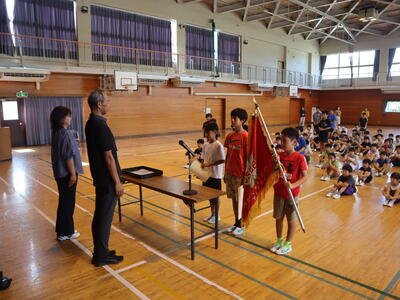 いよいよ明日から夏休みです。休み前最終日の本日、朝の時間に夏休み前集会を行いました。