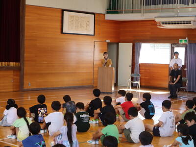 最後に学習指導主任と児童指導主任から夏休み中の学習と生活についてお話ししました。