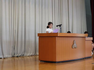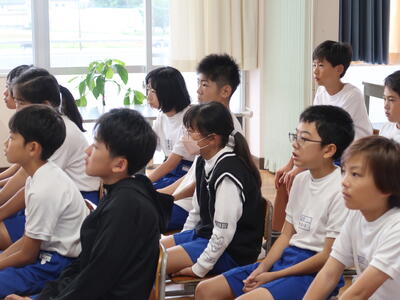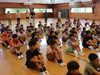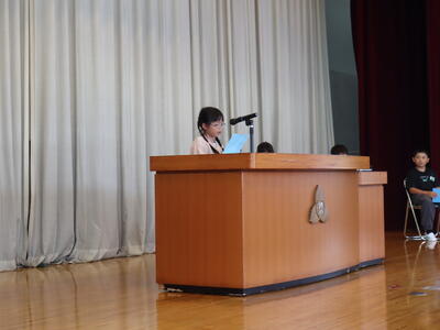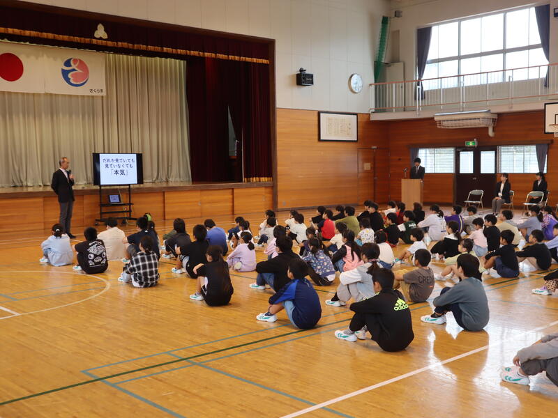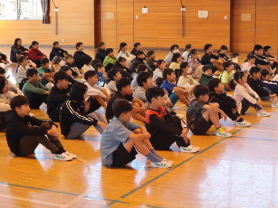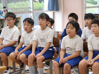 無言で集合、元気なあいさつ、聴く姿勢…どれもすばらしく、感心します。進行の教務主任の先生からも、たくさんのおほめの言葉がありました。