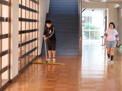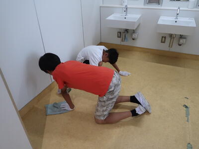 ※集会のあとのことです。3時間目、6年生が、「夏休みに入る前に学校をきれいにしよう」ということで校内のいろいろなところをきれいにしてくれました。最高学年として、学校代表として、すてきな行動、働きぶりです。みんなありがとう。