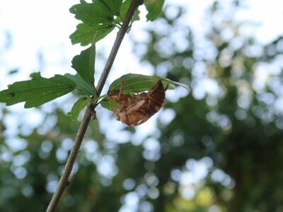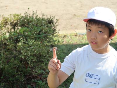 今日は昨日までと比べると少しだけ気温が下がった日でした。とは言え、日差しは強く暑さはまだまだ厳しく続くようです。校長室まで聞こえてくるのはセミの元気な鳴き声。校庭北の緑の中を散策していたら、たくさんのセミの抜け殻、そして鳴き声の主のセミと出会いました。暑すぎるとセミは鳴くのをやめるそうです。今日はセミにとっても気温が下がって過ごしやすいようです。