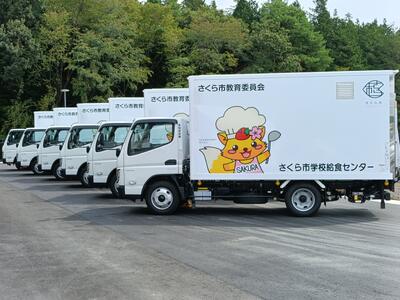 給食センターマスコットキャラクターの「さくらこ」…食器や配送用トラックの荷台などにプリントされます