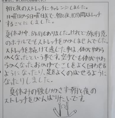 ラジオ体操は久しぶりに行ったのでおおまかなポイントを確認しました。体育の時間などに少しずつ練習を重ねていけるとよいと思います。