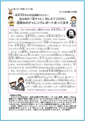 充実した夏休みとなることを願っています。夏休みまで保護者と地域の皆様には大変お世話になりました。休み明けもよろしくお願いいたします。