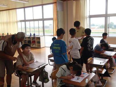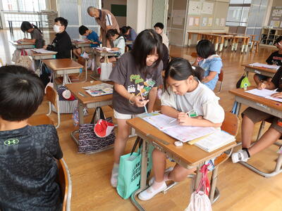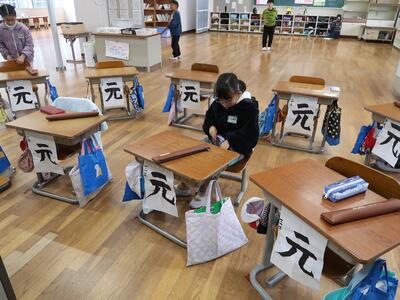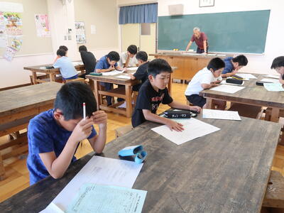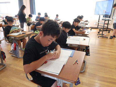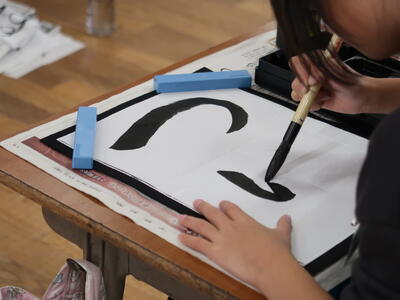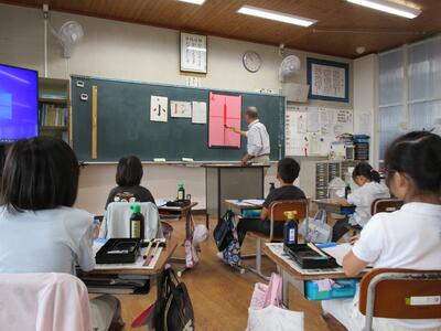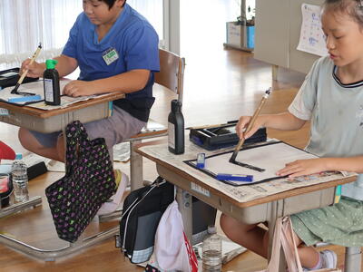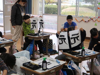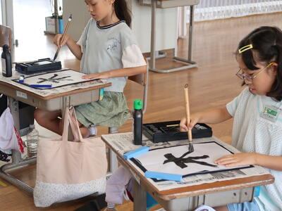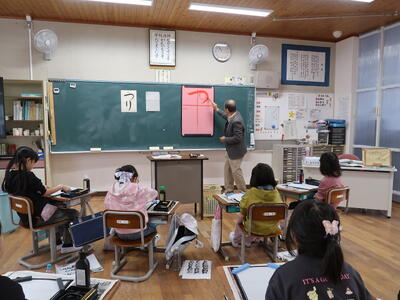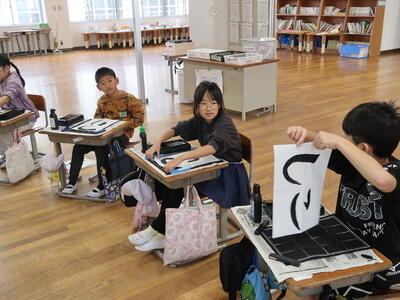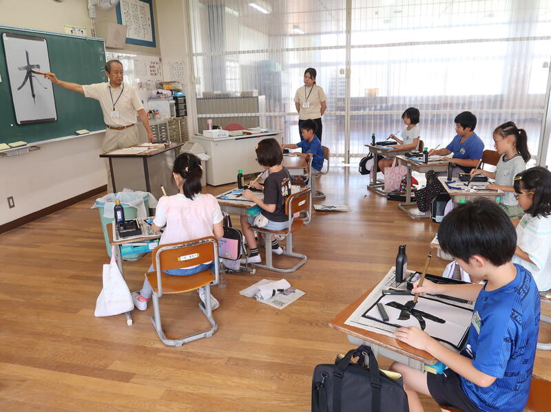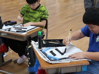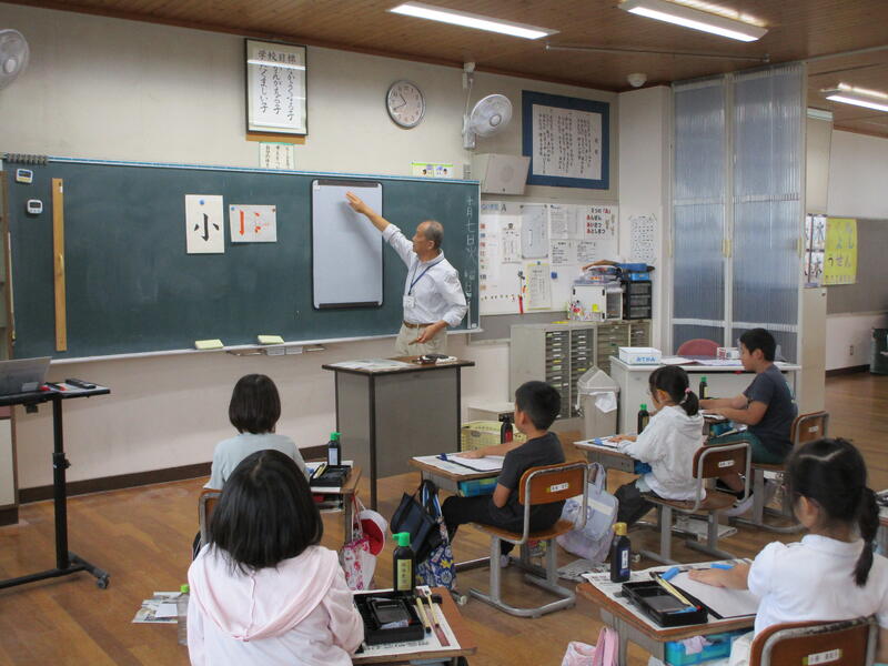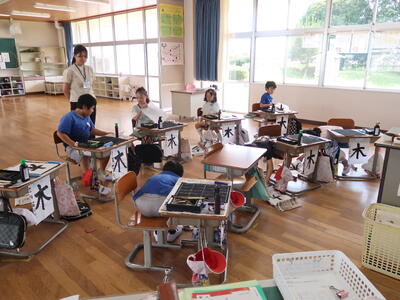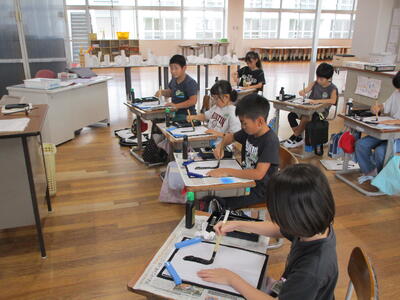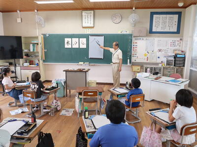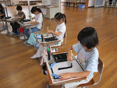 2日、地域の書家の先生にお越しいただき、夏休みをはさんで約2ヶ月ぶりの書写指導を行っていただきました。