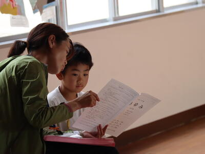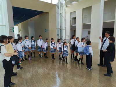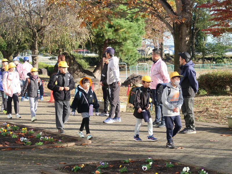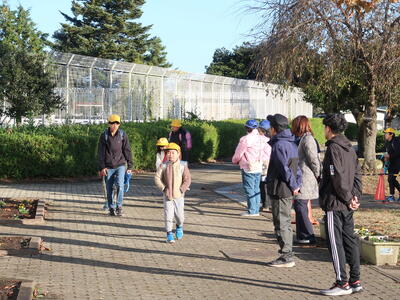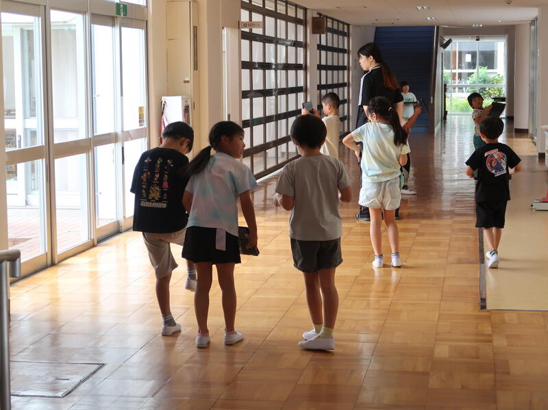 その後は1年生が年長さんの手を引いて学校案内です。確か4月には2年生に手を引いてもらって校舎内を案内されていた1年生も今やすっかりお兄さん・お姉さんになって、年長さんに優しく声をかけたり教えたりしていました。