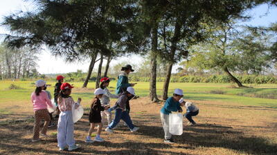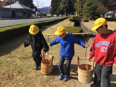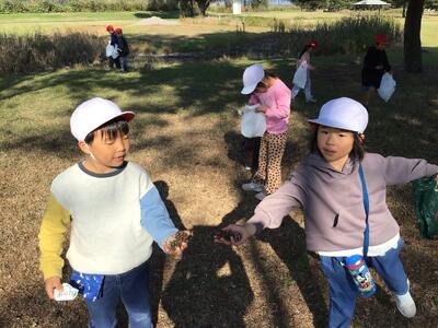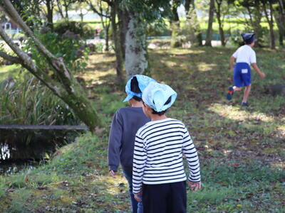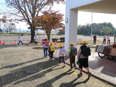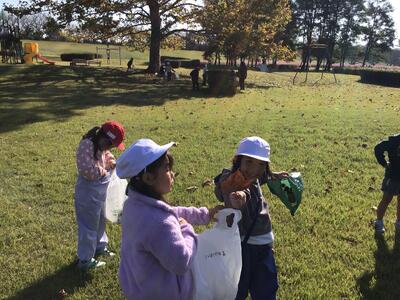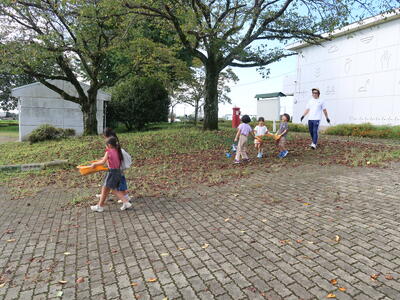 1年生が「葉っぱを集めてフカフカのお布団にしたいな」と話していました。葉っぱを集めている様子を見て、真っ黄色のイチョウの葉でできた「黄金のお布団」ができたら楽しいだろうなとちょっとワクワクしてしまいました。