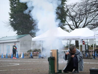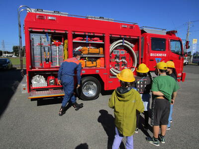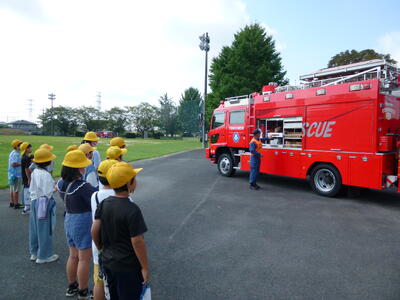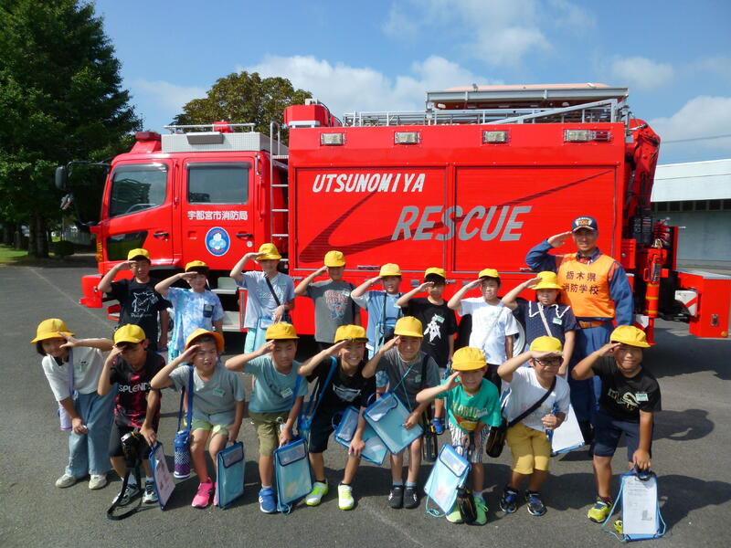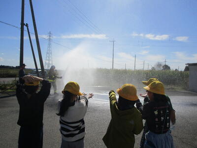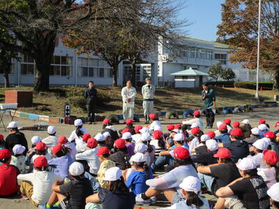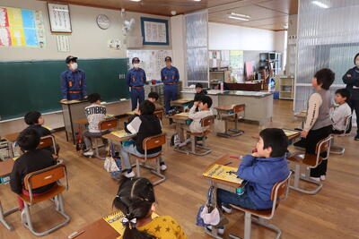 今回は火災発生を想定して行う訓練で、防災学習の観点から、避難後は、学年によって体験学習(6年:消火体験、2・4年煙体験)や防災学習を行う予定でした。氏家消防署の方々にご協力いただく予定でしたが、当時朝、市内で火災が発生したためお越しいただくことはできず、避難したあとは全学年、映像による防災学習を実施しました。