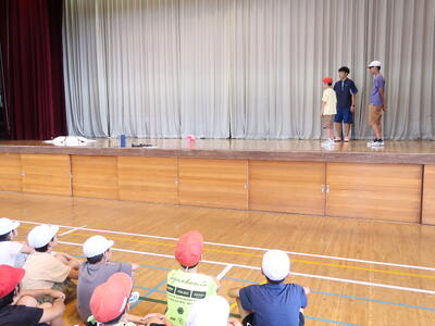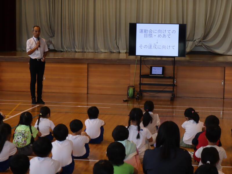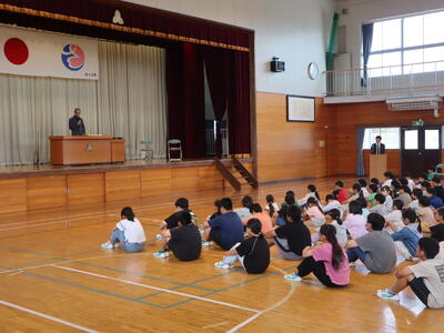 はじめに校長から子どもたちに、今日までの様子を学年ごとに振り返った後、夏休みに向けて次の3つのお願い・約束を伝えました。