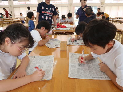 国語「新聞を読もう」という学習で、この時間は全国紙と地方紙の文章構成や特徴などの違いを学びました。そして実際に地方紙を読んでみて、「栃木県」の話題を見つけてどんな特徴があるかを調べていました。子どもにとって新聞は少し親しみにくいものです。こういう学習をきっかけに新聞を手に取る機会(興味のあるものだけでもよいので)が増えるとよいなと感じました。