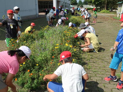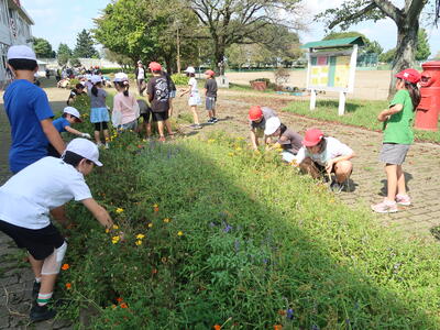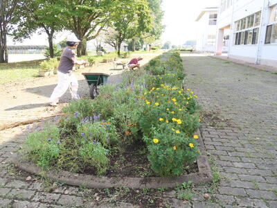 夏休み後の校庭や花壇の除草を実施いただきました。台風の影響も心配されましたが、雨も上がり、少し気温も落ち着いて、雨のおかげで草も抜けやすくなり、絶好の「草取り日和」になったと思います。感謝申し上げます。