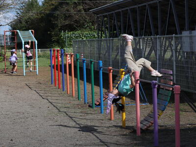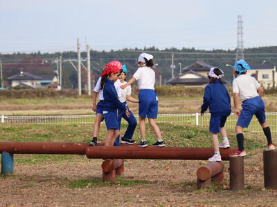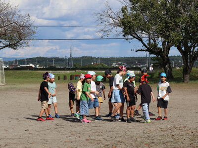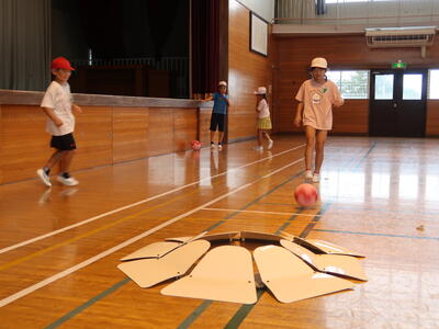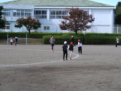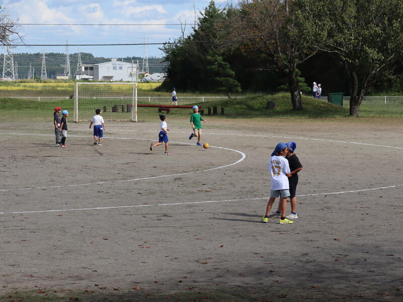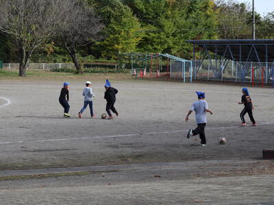 そして、初めての子も多いことから、まつのみ班ごとに練習会を行うことにしています。さっそく今日の昼休みから練習がスタート。今日の練習はこの班。ペアになって交互に蹴ってゴールを目指します。ペアの上級生が下級生にアドバイスしたり、みんなで応援したり、ゴールするとみんなで拍手したり。押小っ子のよさがここでも見られます。
