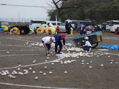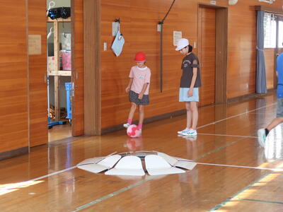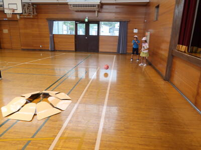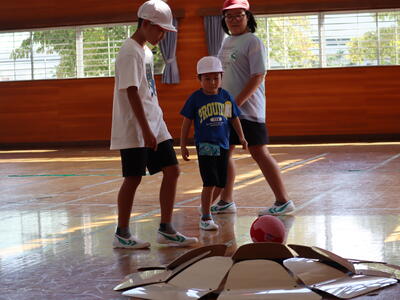 体育館は床が平らなのでボールが転がりやすいのでゴールをはずすと転がって行ってしまいなかなか入らないペアもありましたが、当日は芝なのでそれほど転がらず、いい感じでゴールを狙えると思います。